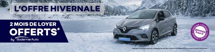 Une remise commerciale immédiate, équivalente à deux mensualités de loyer, plafonnée à 500 € TTC, est accordée pour toute souscription d’un contrat de Location Longue Durée (LLD), de Location avec Option d’Achat (LOA) ou d’un crédit classique auprès de Mobilize Financial Services (MFS – DIAC), hors assurances facultatives, dans le cadre de l’achat d’un véhicule d’occasion éligible au sein du réseau Renault BodemerAuto.